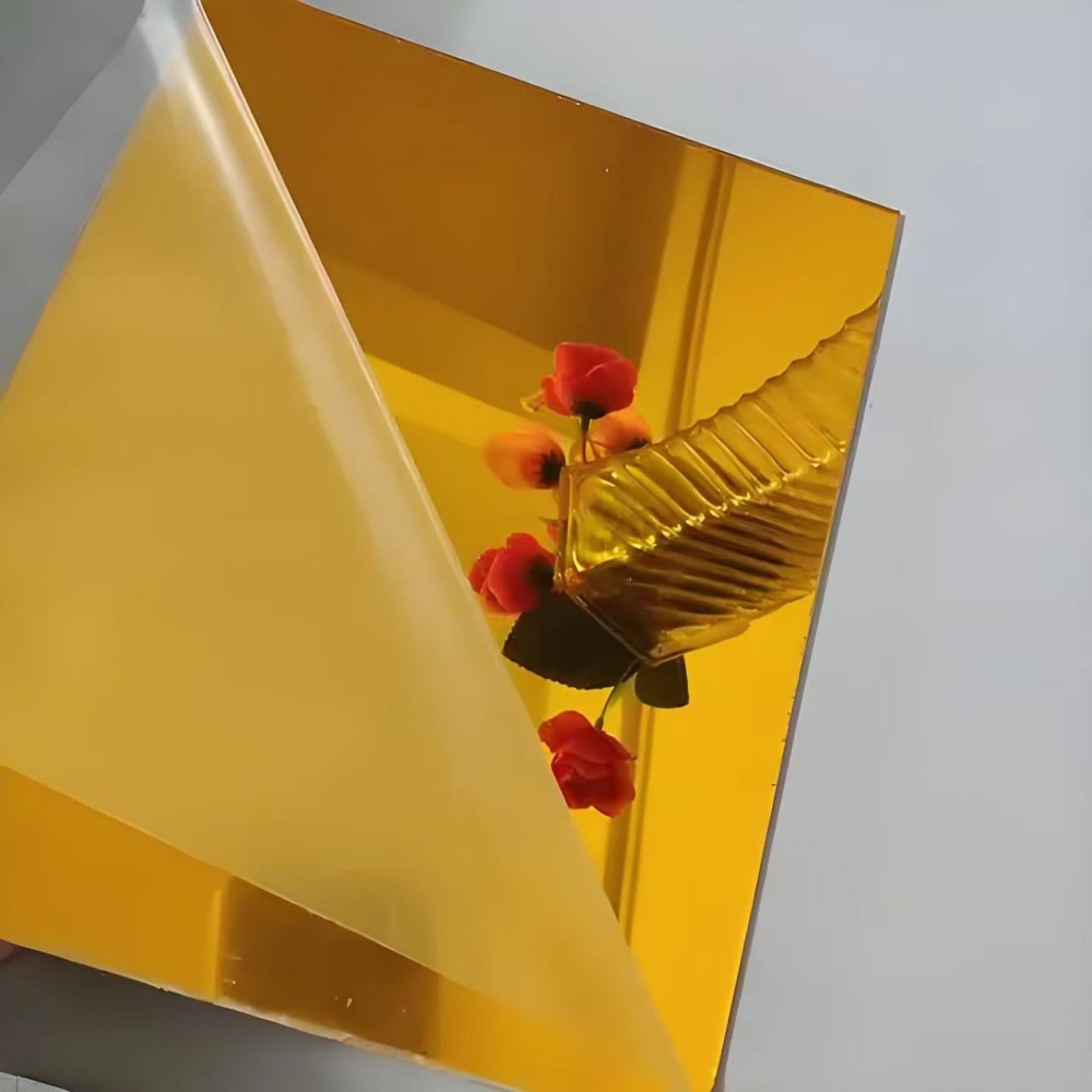 Sangat Dekoratif:Lembaran akrilik cermin emas memiliki tekstur logam yang mewah, namun dengan kesan lebih modern dan keserbagunaan yang lebih baik.