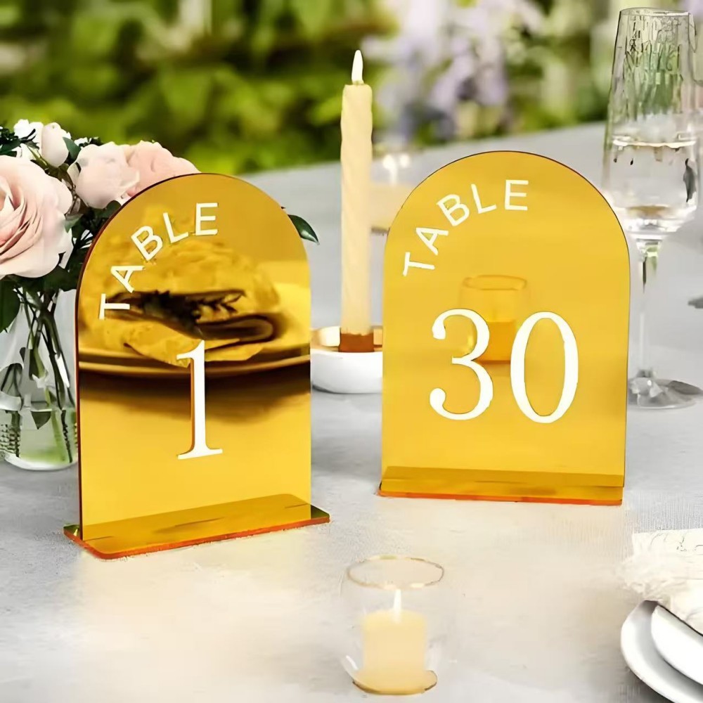 Lembaran akrilik cermin emas dapat digunakan untuk membuat tulisan/logo kelas atas, menghasilkan tulisan tiga dimensi dan logo merek melalui ukiran atau pemotongan. Lembaran akrilik cermin emas dapat digunakan untuk membuat sistem signage/pencari jalan untuk hotel, klub, gedung perkantoran, dan lokasi serupa lainnya.